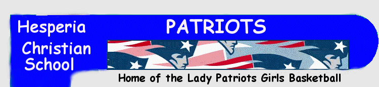 Welcome to the unofficial home page of the Hesperia Christian Lady Patriots Basketball team. Hesperia Christian Lady Patriots are the 2002 and 2003 defending champions of the Agape League. Go Lady Patriots!!