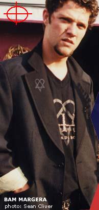 Bam C. Margera Real Name: Brandon C. Margera Bam was born on 9/28/79. He currently lives in West Chester, Pennsylvania. He is a pro skater and used to skate for Toy Machine but left them and now is skating for Element. He is sponsored by Element, Electric, Spitfire, Volcom and Adio. He has been skateboarding since 1988. Bam's favorite skaters are Boulala, Penny, Maldonado, Getz, Saari, and Hoof. His favorite bands are Depeche Mode, CKy, Atrocity, Anethema, HIM, Iron Maiden, and Death Metal. His interests include skateboarding and filming. Bam's favorite food is toasted everything bagel w/ mayo, lettuce and tomato. His favorite movies are Good Will Hunting, Mall Rats, Fost Boys, Robin Hood "Men In Tights". Bam hates Tod Swank and he likes his S4 and A4, hoofs gear, and FDR Park. He has a girlfriend named Jenn Rivell and they have been together for awhile. Bam drives a bright blue 2000 Audi. Before Jackass Bam made the skate/stunt movies "Jump off a Building" "Landspeed Cky" and "Cky2k." Bam is currently working on a movie called "Your Pathetic life" which is all about Ryan Dunn's pathetic life.