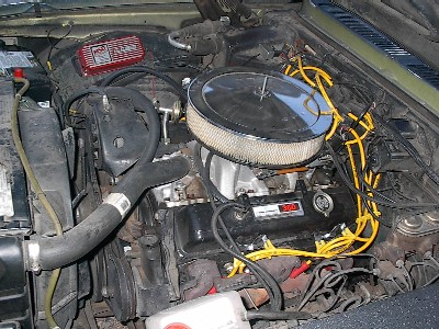 MSD ignition, quadrajet carb, aluminum intake manifold original TH350 transmission The engine was removed in February 2003 and put in the truck, because I needed my truck more than the Nova. |