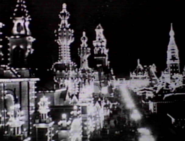 Luna Light O.D! Boy, my feet are starting to hurt. I'm glad we came, though. What a place! Hey, I wanna stop at that little shop in the front of the park on the way out to pick up some postcards. And maybe a souvenir pennant. Just look at those amazing lights! I really hate to leave.