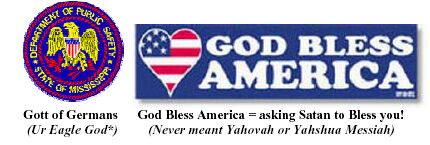 Gott of Germans God Bless America = asking Satan to Bless you! (Ur Eagle God*) (Never meant Yahovah or Yahshua Messiah)