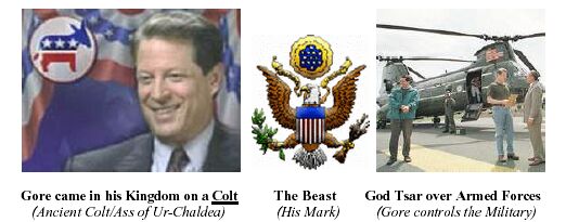 Gore came in his Kingdom on a Colt The Beast God Tsar over Armed Forces (Ancient Colt/Ass of Ur-Chaldea) (His Mark) (Gore controls the Military)