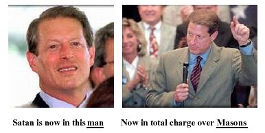 GORE HAS ALREADY BEEN IN THE EXECUTIVE OFFICE SINCE 1993. GORE 2000 HAS HIM GRADUATE TO FULFILL RULING THE MASONIC WORLD ORDER POWER IN 2001. (KJ Revelation 13:5) Gore is thus given 100% power: not trying to take it. Masons shall reject him as their 666 Cornerstone, but Gore is still in power and still running the show, including over Bush)