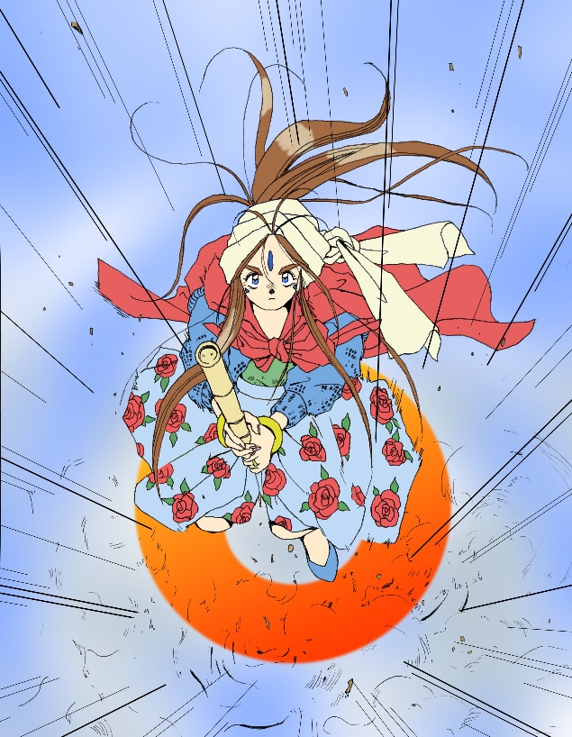 This is a picture of Belldandy from the manga "Oh My Goddess!". Ya, she's on a broom. Anyway, this