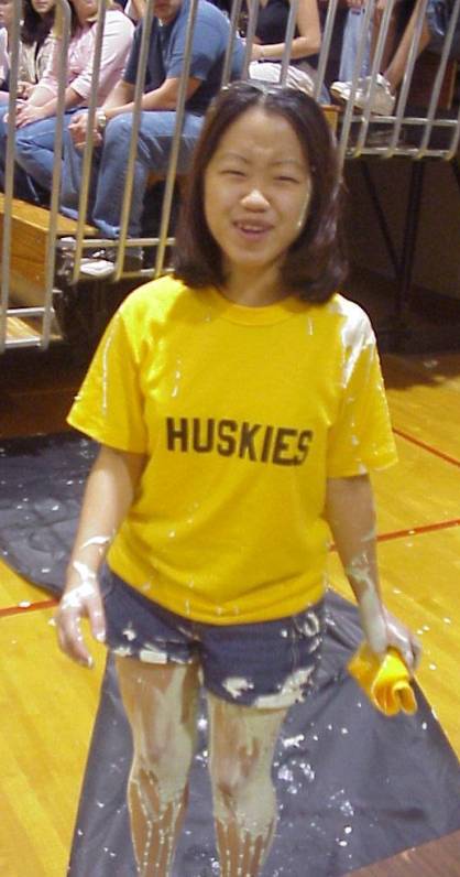 LoL look at this silly pix!! All the class presidents got slime all over them at the first rally (but I got the least on me coz I'm a senior. Which means I'm smart enough to cheat and stood up before they finished dumping the whole thing...hehe)