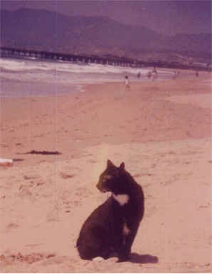 | MILES AT THE BEACH miles died this morning october 7, 2003 at 4:46 he was my loyal friend for 17 years and i will miss him greatly, he was probably one of the smartest cats ever created in the world. goodbye miles, kiss kiss. |
