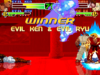| News: | I have the unfortunate miss fortune of saying this site is offically not a project I'm working on anymore. I'm sorry, but my computer can't support Mugen any longer since I upgraded to Windows 2000, and I've just become far to busy to keep it up. So, I probably won't respond to any Mugen e-mails, and won't be updating this site any longer. I am sorry for this unfortunate news. If I still have anyone whom comes to my site often, I'm sorry I haven't updated it since like a little after August... But I've been going through some personal issues, I won't bore you with the details. But if you'd like me to get my site back into working order, just e-mail me and let me know. Just wanna make sure more than just a few people agree that this is a good site and should be updated. Ok, I've spoken my piece, later Mugenites may all your holidays be bright. By the by, you may have noticed I returned to my old Hiryu scheme after a short run with a Masked guy scheme and a Squall from FF 8 theme. If you prefered one of the other themes, or like this one please let me know. |