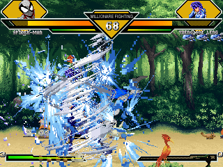 "You missed you," exclaims Ken as he ducks Justices attack.