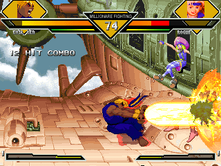 "This is going to hurt," complains Rogue as Goku and Ryu ready to blast her.