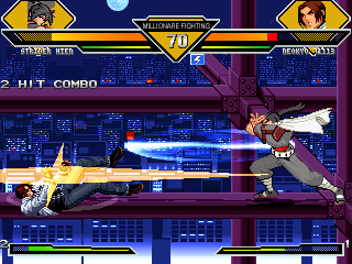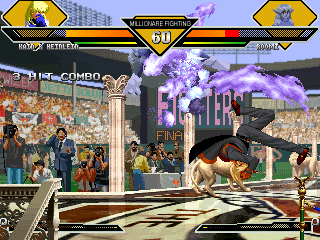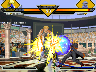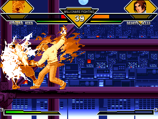 "With this hand of mine, I BURN YOU GOOD!!!!" yells Kyo.