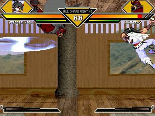 "Hien, ha I dramatically hurt you," Hien sneers. "Over... Used... Move..." says Kyo.