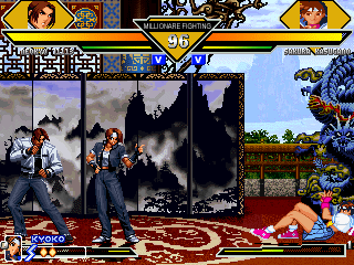 "Had to much to drink last night didn't you Iori?" snickers Kyo.