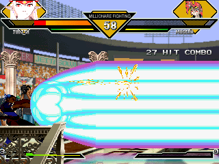 Mugena as Dark Lady blast Judith with a ludicris blast.
