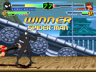 Spidey takes a picture of Ryu frozen in mid air after being defeated.