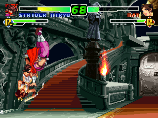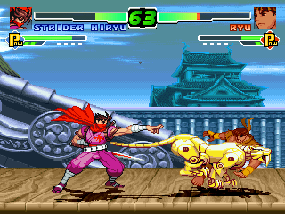 "Sick him my Golden Kitty," declares Hiryu as his sicks his kitty on Ryu.