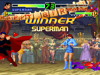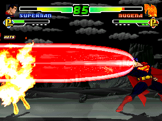 Super Man has eyes for Mugena, too bad they have giant lazers coming out of them. |