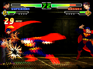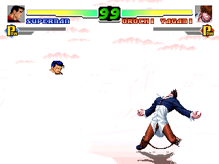 "AHHH!!!! THE DISEMBODIED HEAD OF SUPER MAN!!!!" yells Iori. |
