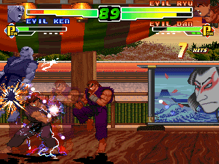Evil Dan runs from Evil Ryu's shocking charged Haduken.
