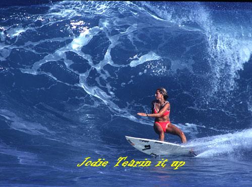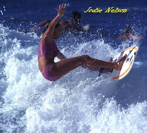 This page is solely based on my all time surfer Jodie Nelson and she is an incredibly awsome person to me! She's not only the best surfer in my opinion and others but she has a heart of gold as well! She also signed my guest book, now how cool is that! I think that all that she has done for surfing she deserves the best fans in the world! I can say that i am respectably one of her biggest fans and I honer her abilities and her personality!