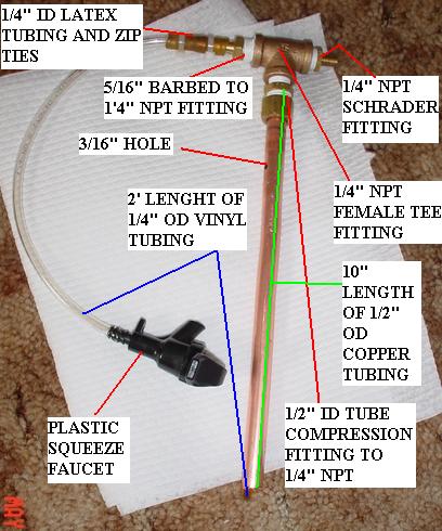 -The bicycle hoses can be ordered online (Pyramid brand bicycle hoses work great). The bicycle hoses need some modification prior to using them. The threaded fittings that come on the hoses are not always 1/8" NPT, if not you must remove the threaded fitting at the bottom (just pull on it really hard until it comes out), then insert a 3/16" barbed to 1/8" NPT fitting. Use a hose clamp or a zip tie to seal the fitting.
