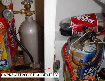 -It is very important to seal the carry-through assembly and the refrigerator so that cold air does not leak. To do this simply apply a liberal coating of silicone around the seams between the 3" long 1/4" brass nipple and the refrigerator. Also make sure to insulate the brass fittings as shown in the above pictures.