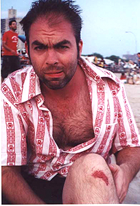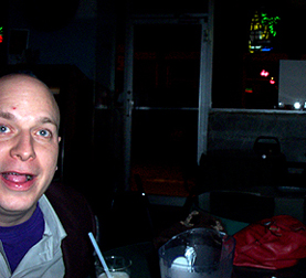Monday, Feb. 3d - Crap, is it February already? Christ. I've been working a lot. I'm in a good mood for a change, as April and i have gotten a lot accomplished today. So, i took a brief walk this realtively balmy afternoon. I'm enjoying some sushi from the walk-up window on 7th Ave., and i bought some Cepacol tablets for my tonsilitis that just won't go away. And i'm writing. Boy, time flies. It won't be long before the weather is nice again. In tribute to that, i've included a sexy, sexy photo that Alex Petti took of me at Coney Island last summer. Okay, so it's a pretty limp excuse to be so self-aggrandizing. But it's a nice photo. You'll also note i decided to do away with the "date bar" at the top. I thought it'd be a neat idea, but ultimately, it was pretty useless. Everything else has been updated, tho (including a few important items on the calendar), so make sure you check out all the new stuff. And sign the damn guestbook for a change ... This sushi isn't very good.