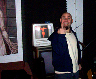 Sunday, Feb. 9th - Recording with Drew went very well today. We did two songs for a comp that The GIRAFFES are putting out, featuring us, them, BEAUTY SUPPLY (neither of which have recorded yet), The VITAMEN (who's stuff turned out great), BLACK CAT REVOLVER (likewise), The FEAST (bearable) and TRIS McCALL (quite nice). One of the songs we selected involved us recording (separately) a really goofy, Sabbath-y fuzz bass intro, and we decided it would be good to have a bunch of peripheral noise while i did the take. So, because Drew has porn movies constantly running in his studio, we turned the sound on the TV up, James and Greg kicked some percussion around the room, Drew stumbled in and threw a box, and Jeff laughed and screamed, all while i was "rocking." It turned out pretty hilarious, and really frightening. I can hardly wait 'till it comes out, and at this rate, it ought to be ready by, like, the end of the summer. (addendenenum, 2/10 - I forgot to mention Drew complaining one not-aforementioned band on the comp was "dook.")