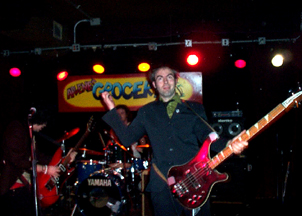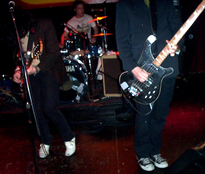 Well, Klewski, it went quite nicely. Or, at least we got a ton of photos. Actually, i myself had an off nite, perhaps due to my repeated dropping of my pick, due to my repeated drinking of sake over dinner. James' parents were in town, and were nice enough to take us all out for sushi. I got the "Suki Roll", a delightful combination of octopus and crab meat which i loudly referred to as the "sucky roll." I've also been designated by James' dad to come up with an acronym for a fake advocacy group that is against government safety regulations on home electronic items (this requires way too much explanation to get into here). Anyhoo, we were expecting some "industry types" at the show; whether they actually showed is beyond me. I'm the last to find out about these things. The good news is we have plenty of ...