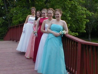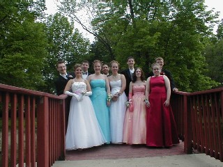 | Here's my Prom group on the Bridge at Coulby Park. (left to right:Jason and Cathleen, Teddy and Dawn, George and Erika, Steve and Megan, and Dan and Kim) |