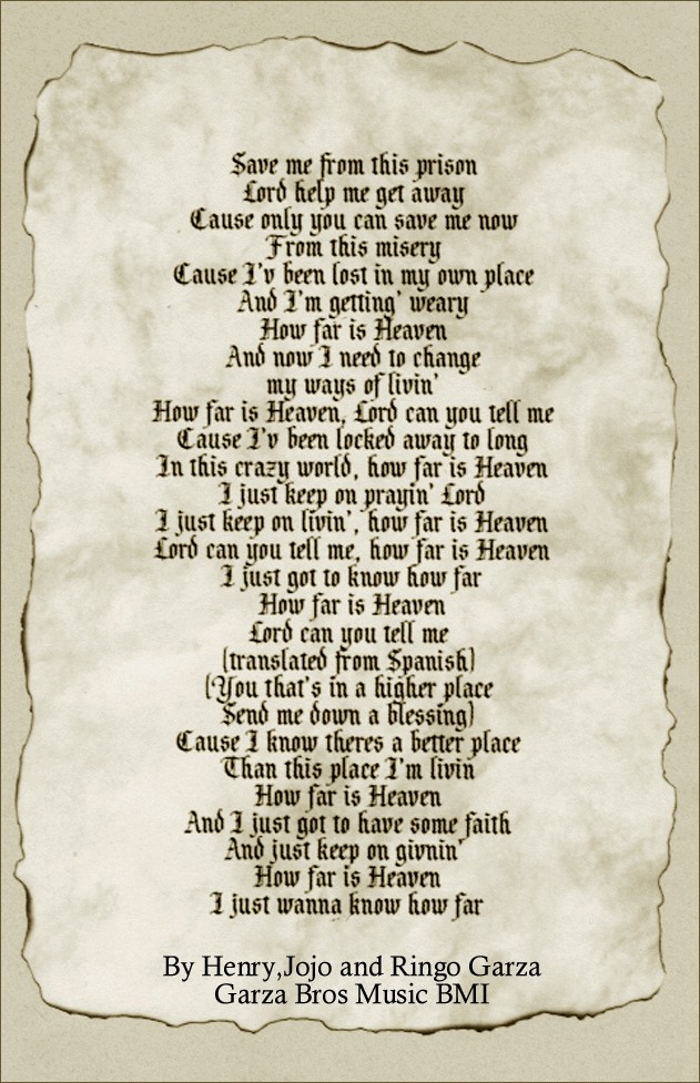 My Name is Rose Cunningham I am 43 yrs old and have been married for 11 yrs. to my husband.. Chris... I have 2 girls Ana 18 who is attending school in Calif.. and Rebecca 8... we live in Lafayette, Louisiana...I first saw the Los Lonely Boys.. sing Heaven .. on VH1... it came when I was just having a bad day... then their video came on...the beat the words.. lifted me up... but it never showed who sang this song... of course my hubby went to computer to search... there was no song listed how far is heaven... well I got to see it again... well I knew I was hooked... to me Heaven.. is now my daily prayer our daily prayer not a day goes by that we do not listen to this song... I am a mexican woman and grew up catholic... so it brought me back to my roots and religion... I love this song... it has changed my life... and I wish to thank the los lonely boys for bringing this song ... to me...