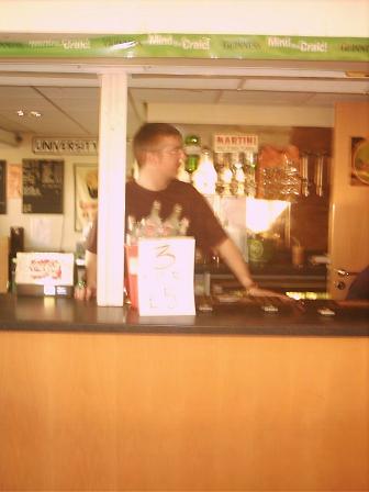 Sorry so blurry. Damian stands behind his truly inspired display of Smirnoff Ice, 3 for £5. |mondo bar: not just a place to get pissed out your head » index