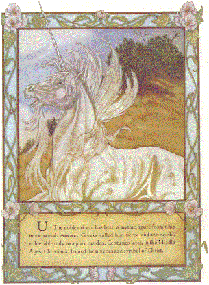 "The Dance of the Unicorn"... "Back in ancient times// When Ireland stood proud and strong// There lived a beautiful creature// Whose mane flowed down so long// It stepped and pranced// Across the rivers and valleys so green// It was a vision, a sight to behold// For every man, woman and child// Its legend spread beyond Irelands green and pleasant land// And reached the ears of a young boy// Who was just learning how to stand// Once he had stood for many a year// He now wanted so to dance// He remembered that bold Unicorn and how it delicately pranced// In his dreams he saw it gallop and move it's hooves so fast// He wanted to be just like that Unicorn// He wanted to live the dance// Years flew by, that boy became a man// He worked so hard to acheive that dream// Determination in his blood ran// He danced so hard and danced so long// Until that magical day it dawned// And Michael Flatley became that beautiful creature// The proud strong Unicorn// He danced for me, he danced for you// He danced for Ireland, bringing back anew// The poetic heritage that existed in this green land// Long before this man was born// Blessing those with his vision so grand// He beat out those ancient rhythmns// With his heels and his toes// The drum pounded ever faster// As the crowds excitement grows// The flame it builds to become one almighty roar// It's cry heard throughout the Universe// Echoing round the planets// As if it were solar wind// This rhythmn so eloquent and divine// Was both sexual and primitive// As it danced on down thru time// To see this noble stallion// Dance with such speed and grace// Bought a smile of joy and radiance// To the mystic Unicorns face// At last, he said, to one and all// I know now that I have seen it all// This man he dances in honour of me// I know this gift must surely be// The greatest tribute ever paid to thee// And all Celts throughout the land// Let this dance continue on// Til time has reached it's natural end// And we are all but sand......... (C) Belinda Hamilton 10-30-99