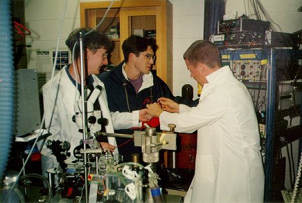 Myself and lab partner Seth in the Goldman lab at University of Pennsylvania (with Dickie looking on).