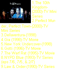 1.Cross-Eyed-(1999) 2.A Brother's Kiss-(1997) 3.Private Parts-(1997) 4.Final Vendetta-(1996) 5.Ripper-(1996) 6.Roomates-(1995) 7.Vibrations(1995) 8.Kickboxer 4: The Aggressor-(1994) 9.The Mambo Kings-(1992)