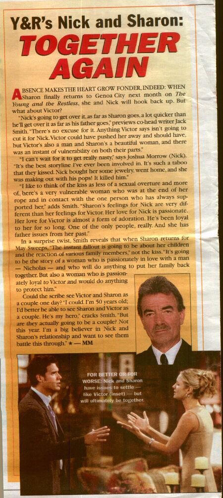 Y & R Celebrate #1 for 8 years New *Honey I'm Home - Part 1 New *Honey I'm Home - Part 2 New *Honey I'm Home - Part 3 New *May Cover 1 New *May Cover 2 New *Nick & Sharon ... Together Again |
