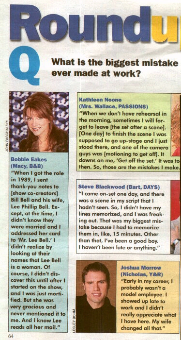 | JOSHUA will appear on an episode of the game shows The Hollywood Squares and Pyramid. HEATHER TOM will also be appearing on the game show Pyramid scheduled to tape on Tuesday, September 23. The airdates for these show are TBA. | |||||