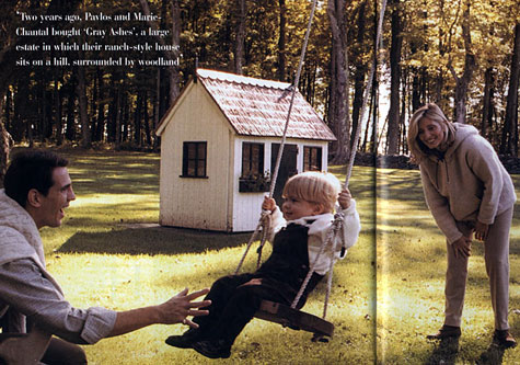 LEFT: An obviously happy Pavlos smiles as he holds little Constantine in his brand-new fire engine. |