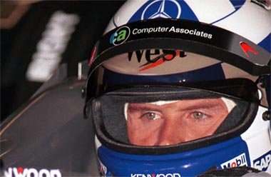 The safety car eventually pulled in and the race continued. There were no reports about the marshall's health. The rest of the race was fairly univentfull apart from Mika Hakkinen's crash. Mika had some sort of problem with the rear end of the car (possibly suspension) and lost control, smashing into a tyre wall at high speed backwards. Mclaren team member Adrian Newey reported that Mika was a bit stiff and had a mild concusion as something had hit his helmet and left a mark.