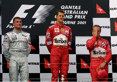 The three drivers who gained from this (they were promoted up a place) were the impressive Nick Heidfeld in the Sauber who looks stunningly quick now he's got his hands on a 'proper' f1 car. Heinz Harold Frentzen, who recovered well from his spat with Rubens to finish fifth. The third man to take advantage of this was the 21 year old Kimi Raikkoned who scored a point on his debut. The Melbourne Gp was only his 24th single seater race but the inexperience doesn't seem to be slowing him down.