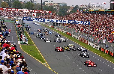 As sunny Melbourne counted the red lights and prepared for the off they had no idea of what lay ahead. Murrey shouted go, go,go, GO! and the cars all got away cleanly although it was touch and go that the front runners would get round the first corner without tripping over each other. Michael's start was perfect as was Mika Hakkinen's. Barrichello didn't get away too well, he dropped bach to fifth behind Frentzen and Ralf.