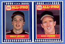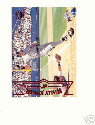 Here's what I have of Wally Joyner's. I would like to trade for wally joyners I don't have but i will trade for any wally joyner. So if you have any Wally joyners you want to get rid of email me with a trade or a price. Also the numbers in (#) are quantity. Also the Wally joyner cards that have *** folowing them are cards i would like to have more of, but then again i would like to have more of all of them. If one of the cards listed is underlined you can click on it and the card will be displayed. Thanx for your help.: