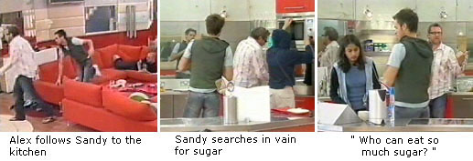 SANDY: Oh! They used all that sugar for that cake didn’t they! For fuck’s sake!