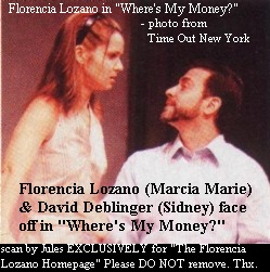 Click Here for the "Where's My Money?" Press Release from The Manhattan Theatre Club - 9/27/01John Patrick Shanley has directed yet another of his many plays, Where's My Money? Not, alas, where his mouth is; the money, or pay dirt, or masterwork still eludes him. Shanley is one of our most frustrating playwrights and screenwriters: Though he is a natural-born dramatist, his biggest hit was a film, Moonstruck (which, however, doesn't mean that he is not responsible for some deservedly obscure movies -- anyone remember Five Corners?). To put it succinctly, Shanley has seldom written anything wholly devoid of interest or totally on the mark. The difficult final stage of his journey, from spotty to spot-on, has yet to be traversed.