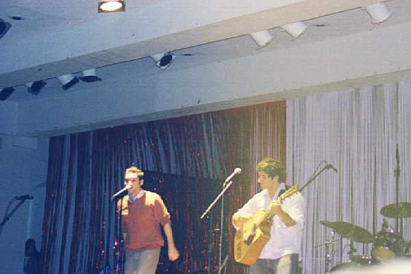 Well unfortunatly I was a little farther back then I had thought. I even had a Zoom camera, but it didn't get the close pictures I was hoping for. I had 13 rolls of film, but Tony is small in all the pictures, but I will post a decent amount of pictures. Hope you all like them even though they are far away. Tony's Q&A was very funny, on both Saturday and Sunday. A member of The Tweedy Book Guy Group (Patricia) has put a transcript up of the Q&A on Saturday so check it out at her site HeadsUpInfo site. On Sunday Tony sang, let me just say one word: moving. I have always wanted to see Tony sing in person. The feeling he put in "Talk To You" and "Babies" was very moving. After that Amber and Tony sang together, it was quite funny. I think the best part was when they were bringing the piano and Tony said "Fuck me, it's a grand piano!" That was great!