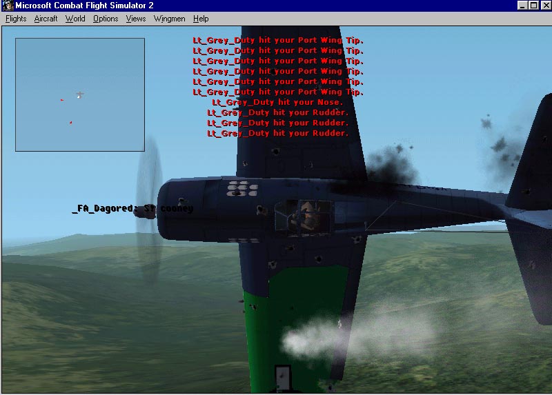Aircraft have a normal texture file and a damage texture file. At some point, the damage file is used to show missing parts, wingtips or tail. (Example of repainted aircraft with green damage file, the damage portion is used to show the missing wingtip.)
