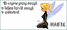 I'd like to mention something bout my banners...Angelfire provides the ones at the top, but if I like a site a LOT, I provide advertisement on this page. Check them out...they're awesome! I hate banners, so if a site isn't up to my standards, I don't banner it.
