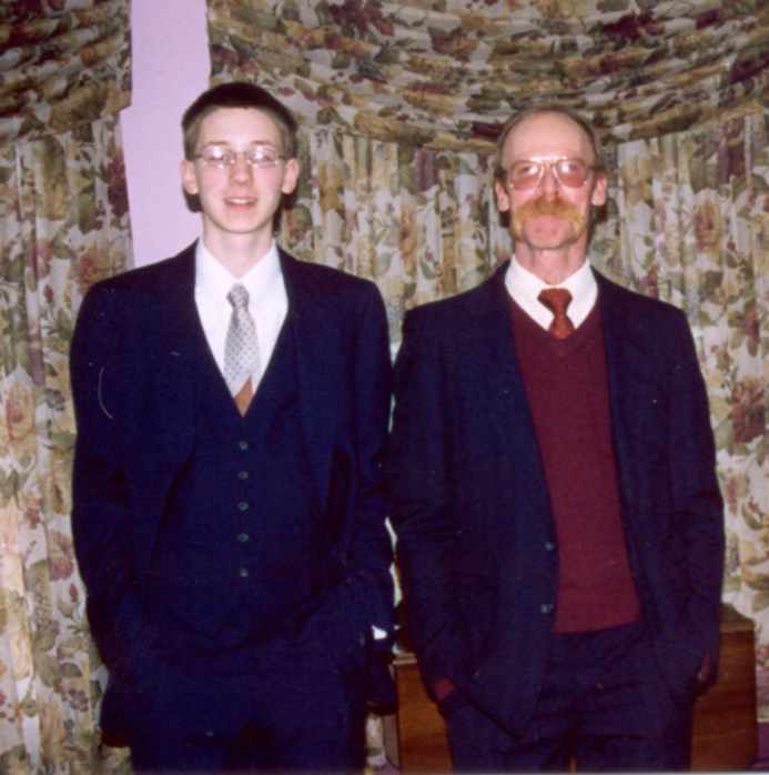 Me, the bishop, and my aunt Anne after my confirmation. |
