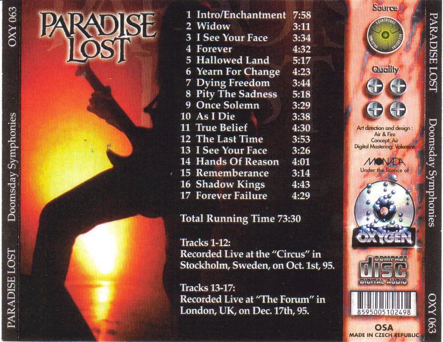 October 01, 1995 Circus, Stockholm, Sweden ARTWORK Front Inside Back SETLIST: Intro Enchantment Widow I See Your Face Forever Hallowed Land Yearn For Change Dying Freedom Pity The Sadness Once Solemn As I Die True Belief The Last Time I See Your Face * Hands Of Reason * Rememberance * Shadow Kings * Forever Failure * * = Live songs from 17.12.95 - The Forum, London, England. BACK