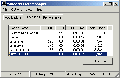 By now you should have finished customizing your system Services settings. Hopefully by now you will have reduced the amount of Memory consumed by the Services program (services.exe), disabled certain Services to improve your systems security or just configured the Services to enhance your Networked environment, or Standalone operating environment.