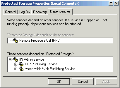 A Dependency is a relationship of reliance between 2 or more resources that makes it necessary for them to run in the same group on the same node. In relation to Services, some are dependant on others to run correctly. To find out whether or not a Service is dependant on others, Right click on the Service in question & select Properties. Next select the Dependencies tab.